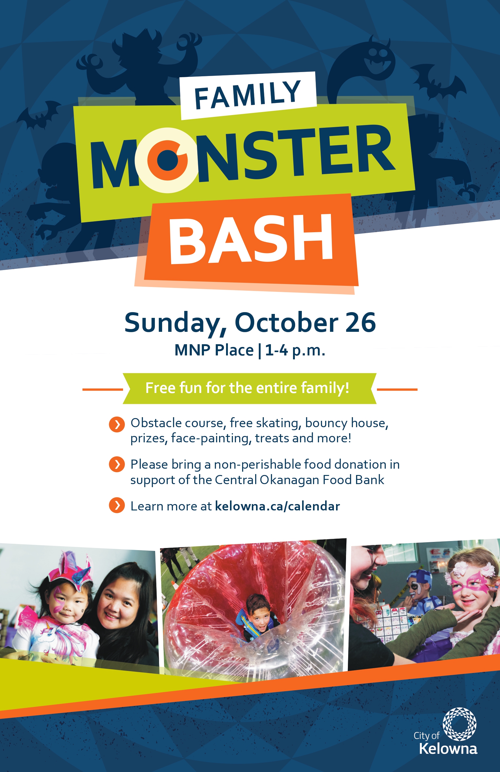 Join the annual Family Monster Bash for an afternoon of spooky, family-friendly fun! Enjoy activities like a bouncy house, Zorb soccer, face painting, Halloween themed games, free skating, and more. Costumes encouraged! The concession stand will be open and skate rentals available on site (helmets required for skating). Recommended for ages 2–12, but all friendly